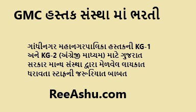 ગાંધીનગર મહાનગરપાલિકા હસ્તકની KG-1 અને (અંગ્રેજી માધ્યમ) માટે ગુજરાત સરકાર માન્ય સંસ્થા દ્વારા મેળવેલ લાયકાત ધરાવતા સ્ટાફની જરૂરિયાત બાબત